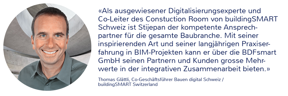 Die Experten der BDFsmart verfügen über ein einzigartiges Know-how und ein grosses Netzwerk, um Unternehmen in der Baubranche kompetent und mit Empathie durch die Digitale Transformation zu begleiten.