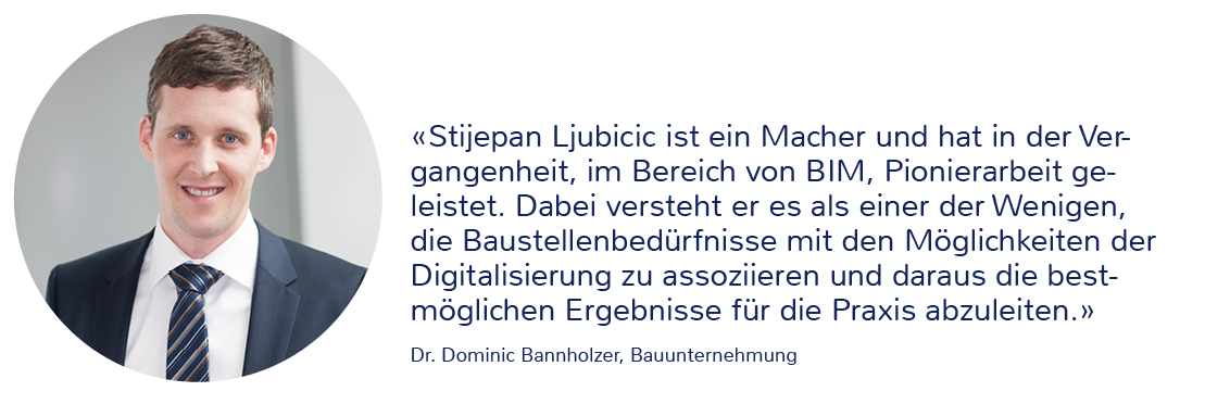 Das führt uns zu einer besseren Planungsqualität, ressourcenschonenderen Realisierung sowie einem effizienten Betriebs- und Unterhaltsmanagement. Dies hat insgesamt positive Auswirkungen auf Qualität, Termin- und Kostensicherheit sowie die Wettbewerbsfähigkeit der Baubranche.